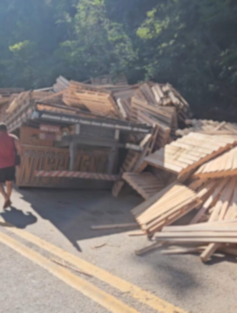 O transito ficou em meia pista pois a carga ficou espalhada pela pista, mas nesse momento da reportagem já havia chegado ao local um guincho e um outro caminhão que estava sendo carregado.