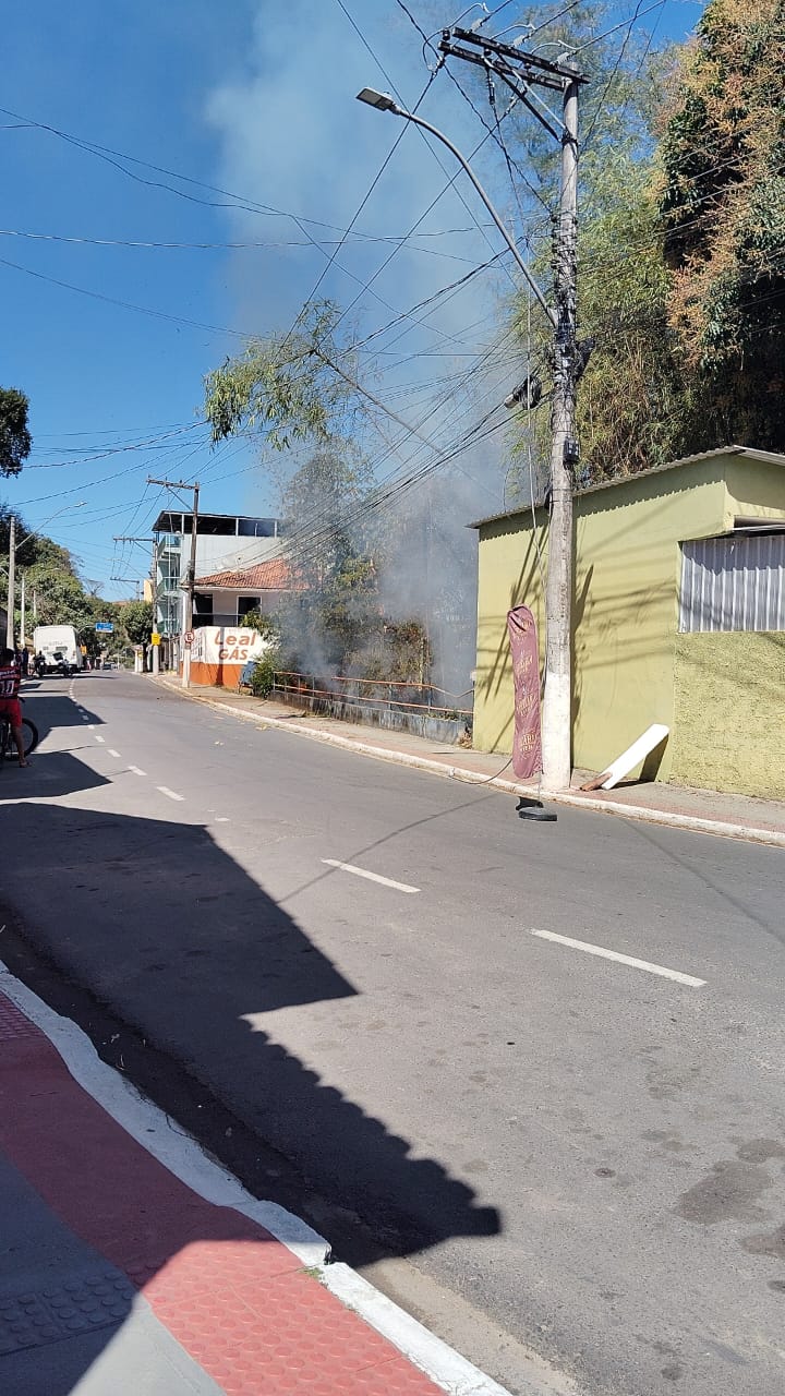 Um fio de alta tensão caiu em uma área de bambuzal na Rua Joaquim Moraes, em Atílio Vivácqua, provocando um incêndio e