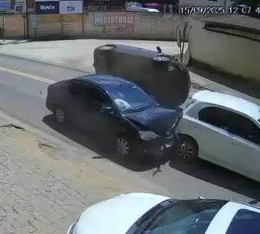 Foto: Redes Sociais Uma câmera de videomonitoramento flagrou o momento exato de um acidente, no início da tarde desta segunda-feira (15) no