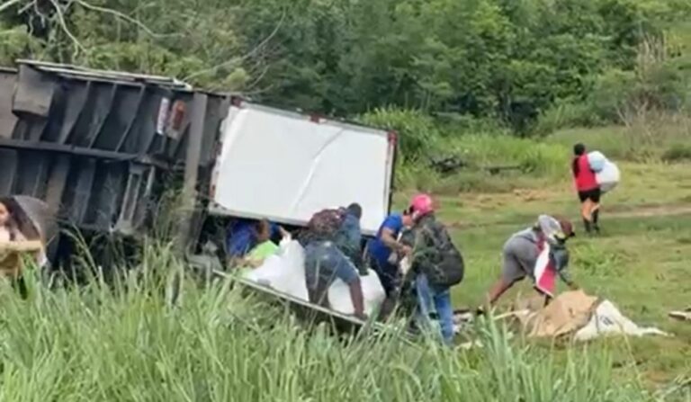 Carreta tomba na BR-101 e carga é saqueada no Sul do ES