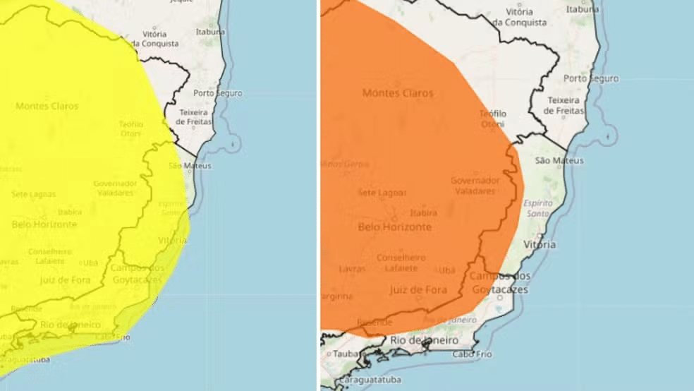 Inmet emite alertas amarelo e laranja para o Espírito Santo — Foto: Reprodução/ Inmet