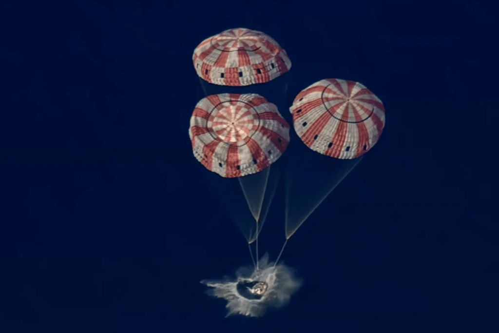 A aterrissagem ocorreu no horário previsto pela Nasa e aconteceu nas águas do Oceano Pacífico, próximo à costa da cidade de San Diego, nos Estados Unidos. Através do apoio naval de barcos e helicópteros, a tripulação foi resgatada por volta das 22h40.